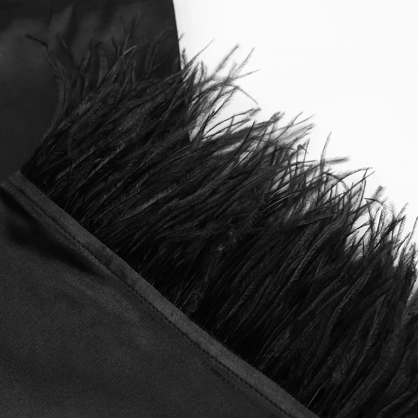 Albornoces de plumas de satén, minivestido Sexy de manga larga, batas holgadas para mujer, bata blanca, vestido de novia, vestidos de novia negros