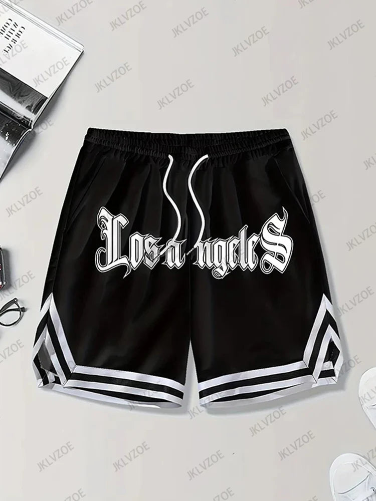 Novedad de verano, pantalones cortos de békerbol con estampado de Los Ángeles para hombres y mujeres, Jersey informal Hawaii Beach Fitness, pantalones cortos de entrenamiento deportivo a la moda